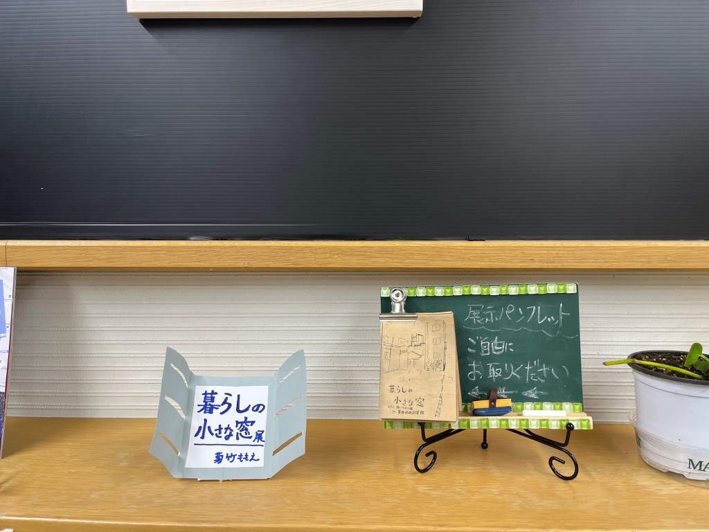 ご案内が遅くなってしまいましたが、先日より箕面西南図書館の2階カフェスペース”cotie”で絵を展示しています。